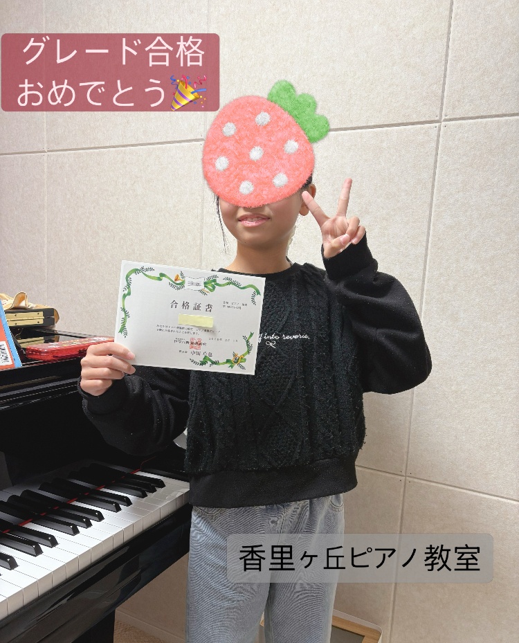 ヤマハグレード9級合格、おめでとう🎉A判定の高得点でビックリ❗️自由曲では、気持ちの伝わる演奏でしたと嬉しい好評を頂きました。今は発表会に向けて大好きな曲『Summer』を練習中♪エンディングこんな風に仕上げたいとイメージ膨らんでいる様子。頑張って仕上げていこうね😉